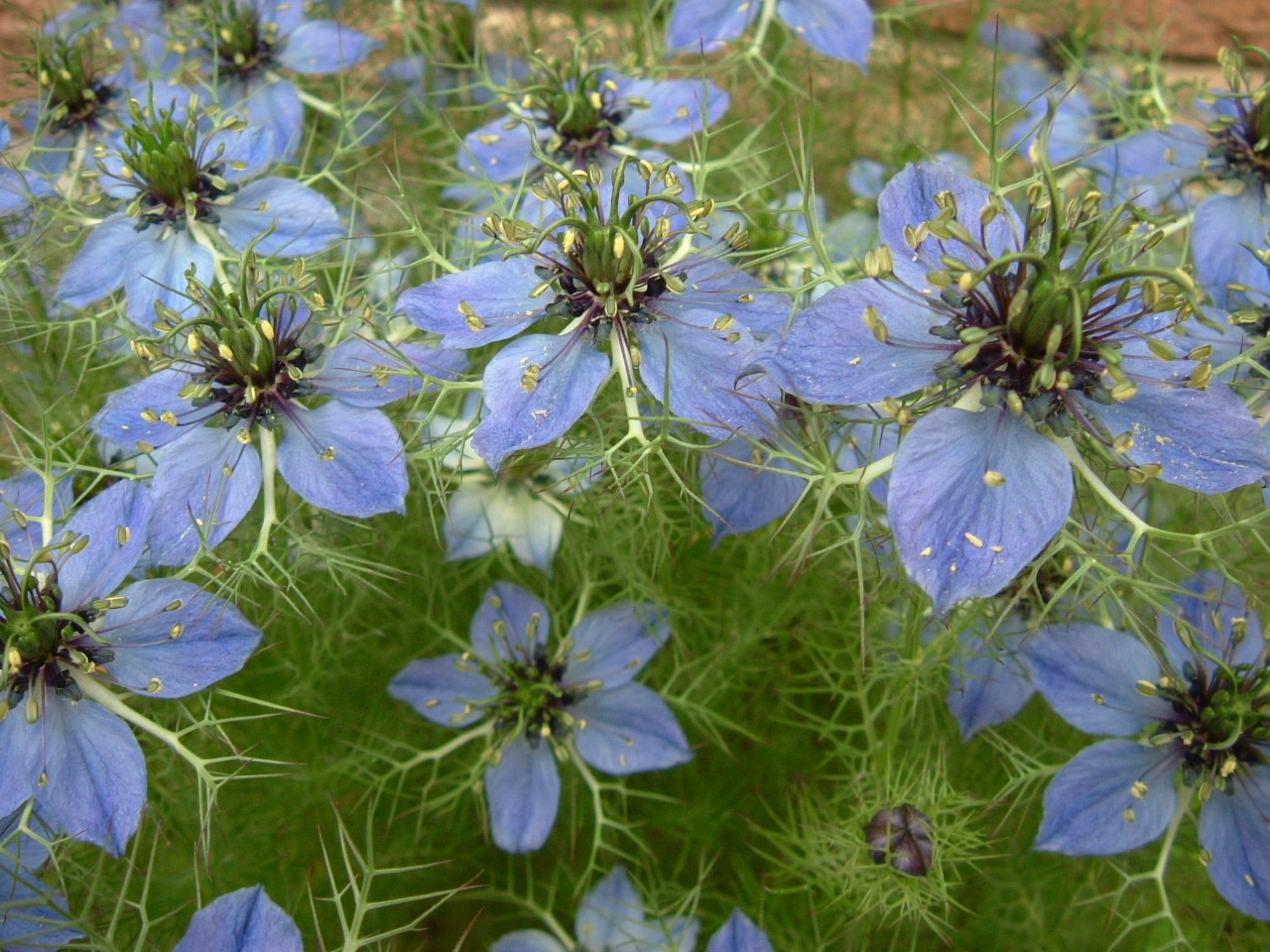梅雨入り間近のどんよりした朝、ニゲラが満開になりました。